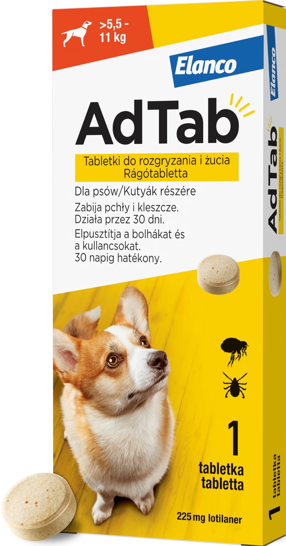 ADTAB Tabletka na kleszcze i pchły 225mg dla psa 5,5-11kg