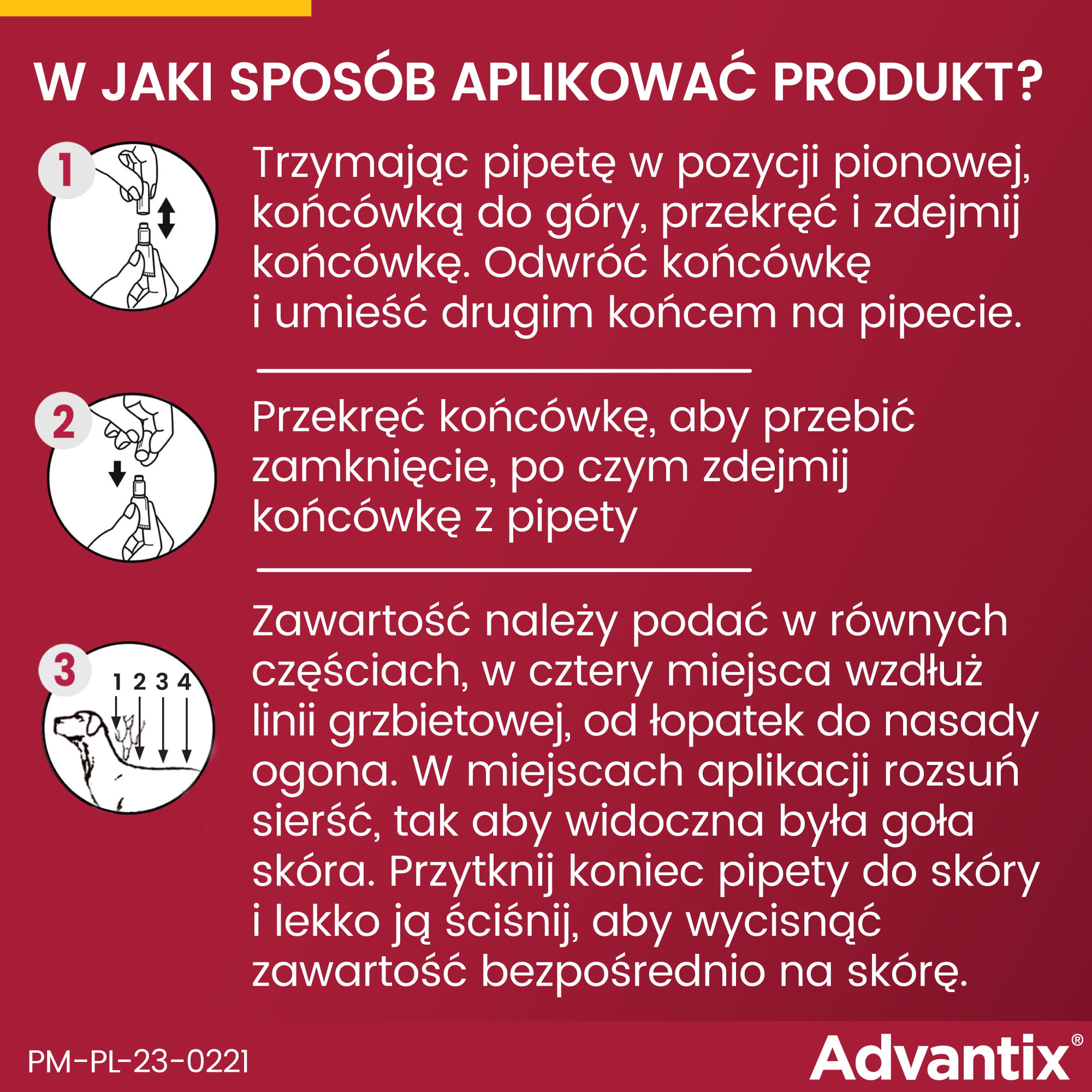 - Odkręć końcówkę pipety i umieść ją na skórze psa, w okolicy między łopatkami.