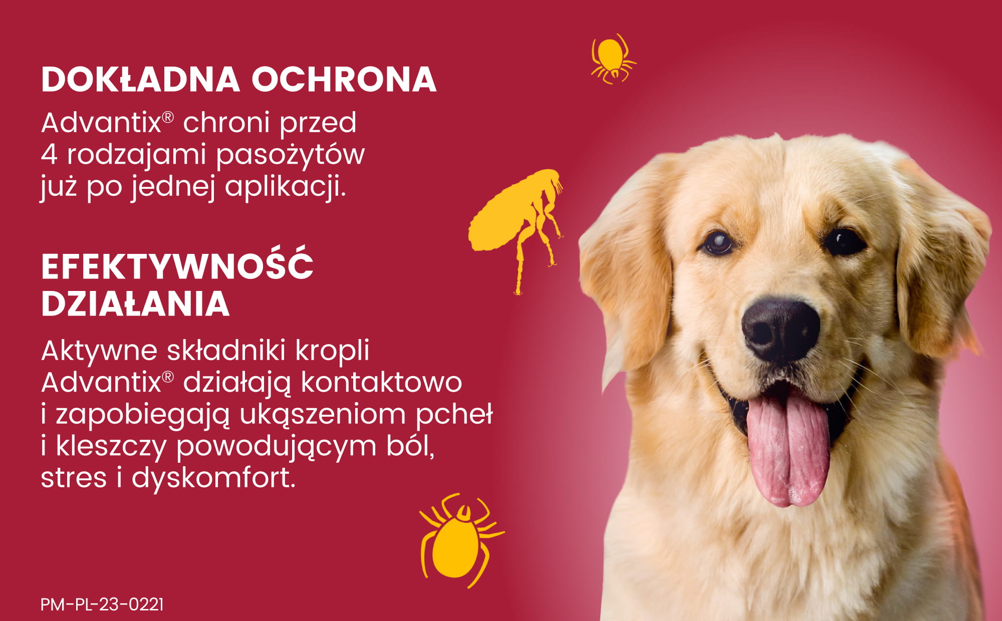 Pchły: Advantix skutecznie eliminuje pchły w ciągu 24 godzin i zapobiega ich ponownemu pojawieniu się przez kolejne 4 tygodnie. Może być stosowany jako część leczenia alergicznego pchlego zapalenia skóry (APZS).