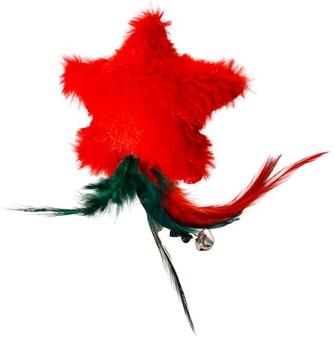 - Wymiary gwiazdka 9 × 9 cm, długość piór ok. 12 cm, dzwoneczek ok. 7 cm – idealne proporcje dla kotów w każdym wieku