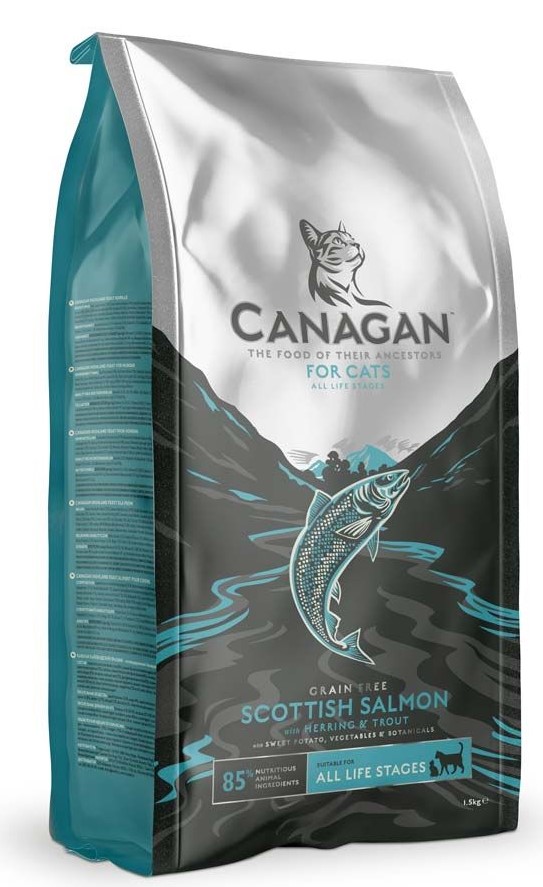 Canagan Scottish Salmon to bezzbożowa, doskonale zbilansowana karma dla kotów, oparta na wysokiej zawartości ryb (ok. 75%). Dostarcza pełnowartościowego, wyjątkowo łatwo przyswajalnego białka, wspierając zdrowie i witalność kota na każdym etapie życia. Receptura powstaje zgodnie z rygorystycznymi standardami produkcyjnymi porównywalnymi do żywności dla ludzi. Jej bazą jest świeży szkocki łosoś bez ości, wzbogacony o śledzia, pstrąga oraz mięso białych ryb - połączenie, które wyróżnia się jakością i doskonałym smakiem, nawet dla najbardziej wymagających kotów.