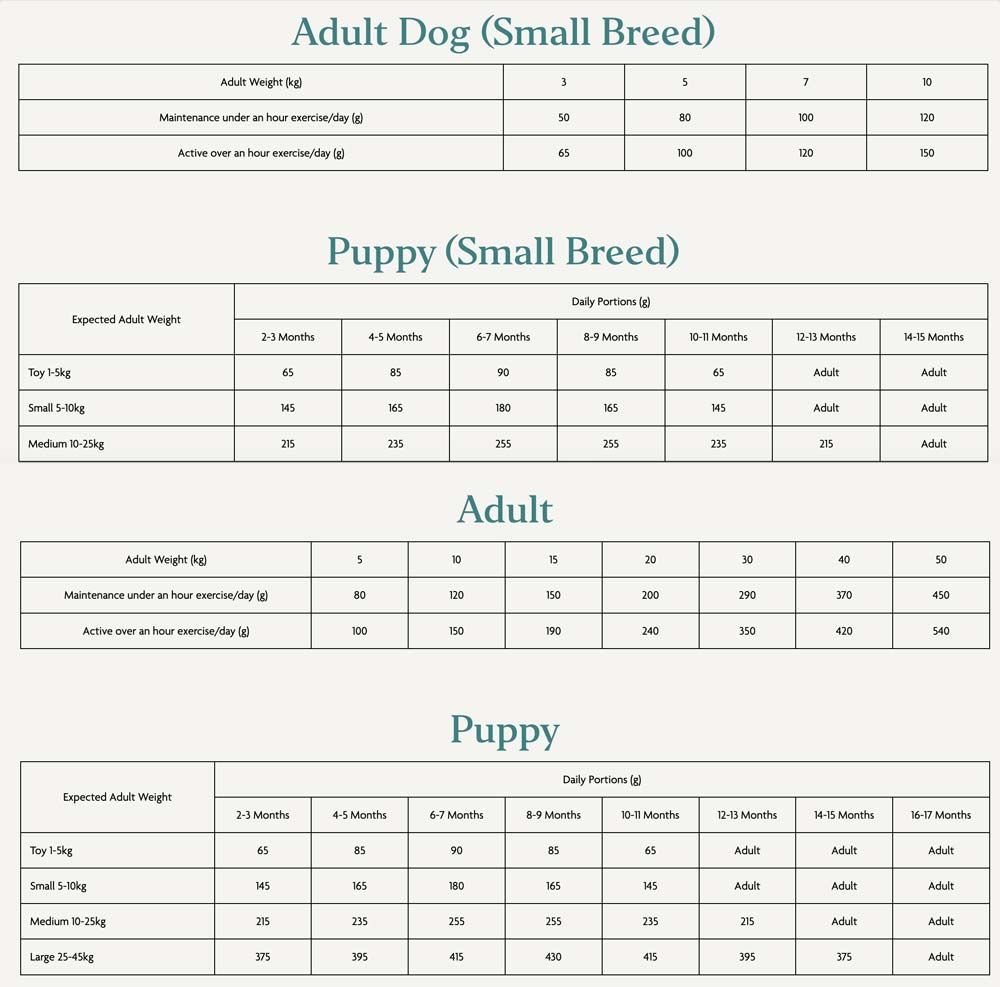 Skład: Świeży Łosoś szkocki bez ości (26%), bataty, suszony łosoś szkocki (10%), suszony śledź, (8%), goch, ziemniak, suszona biała ryba (5.5%), olej z łososia (5%), świeży pstrąg (4%), lucerna, olej słonecznikowy, wywar z łososia (1.5 %), białko z groszku, witaminy, minerały, jabłko, marchewka, szpinak, wodorosty, fruktooligosacharydy, Psyllium, rumianek, mięta, nagietek, żurawina, anyż, kozieradka.