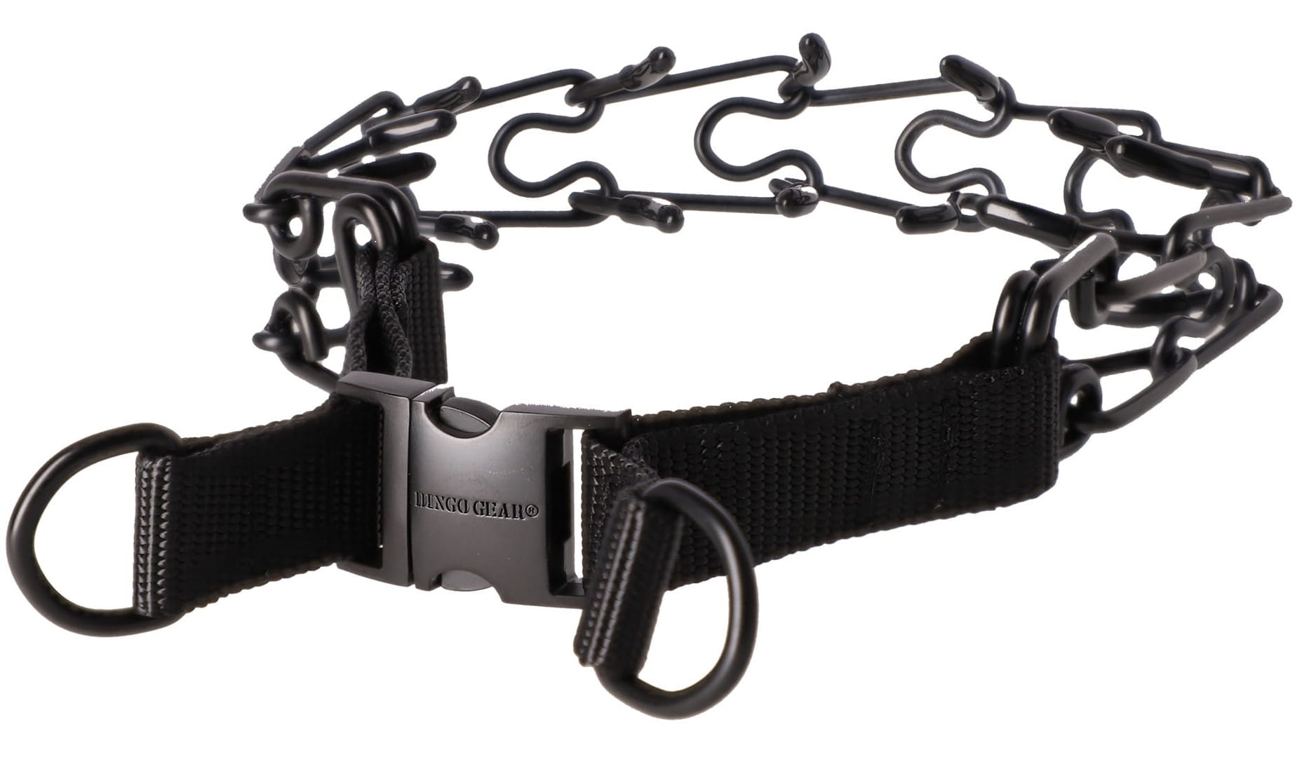 - Możliwość regulacji – dopasowanie do obwodu szyi psa poprzez możliwość łatwego wypięcia pojedynczych ogniw kolczatki