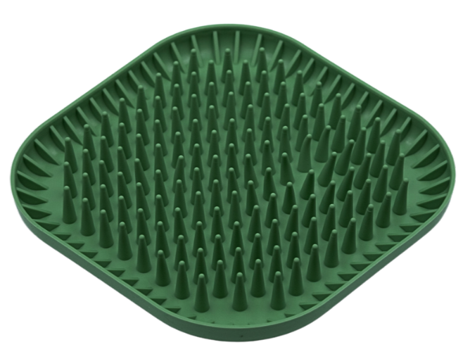 FIBOO Mata Fiboowl Spiky to praktyczna miskomata do lizania, która łączy zabawę z karmieniem. Jej charakterystyczna powierzchnia z licznymi wypustkami przypominającymi kolce jeża sprawia, że zwierzak musi poświęcić więcej czasu na wydobycie jedzenia. Dzięki temu posiłek jest spożywany wolniej, a pupil jednocześnie się angażuje i wycisza. Produkt został zaprojektowany tak, aby stymulować psa lub kota podczas jedzenia, a jednocześnie pomagać redukować stres poprzez naturalne zachowanie, jakim jest lizanie. Mata sprawdzi się zarówno przy codziennych posiłkach, jak i przy podawaniu past, mokrej karmy czy ulubionych przysmaków. Dodatkowym atutem jest możliwość zamrażania przekąsek, co czyni ją świetnym rozwiązaniem na upalne dni – chłodząca nagroda zajmie pupila na dłużej.