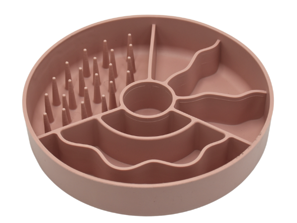 - Spowalnia tempo jedzenia – specjalna struktura z wypustkami i rowkami wydłuża czas spożywania posiłku i wspiera układ trawienny