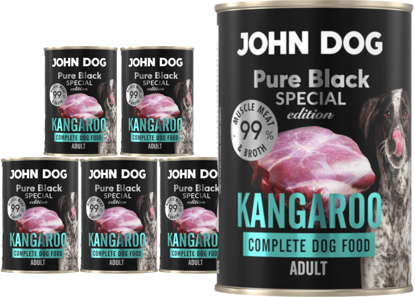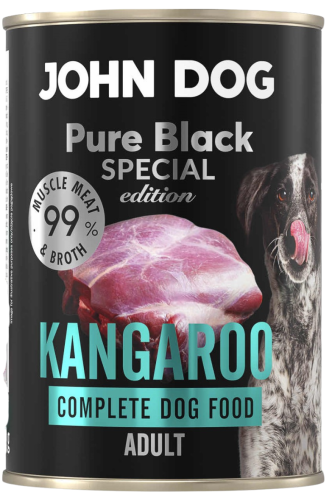 John Dog Pure Black Special Adult Kangur to wysokomięsna mokra karma stworzona z myślą o dorosłych psach. Jej receptura oparta jest na delikatnym mięsie kangura, które jest lekkostrawne, dobrze przyswajalne i idealne nawet dla psów z wrażliwym układem pokarmowym. Charakteryzuje się wysoką zawartością pełnowartościowego białka przy jednocześnie niskim poziomie tłuszczu. Kangur dostarcza cennych witamin z grupy B – zwłaszcza B6 i B12 – które odgrywają ważną rolę w prawidłowym funkcjonowaniu metabolizmu, odporności oraz układu nerwowego. Dodatkowo mięso to jest dobrym źródłem żelaza oraz kwasów tłuszczowych Omega-3, wspomagających zdrowie serca i układu krążenia. To połączenie prostego składu, naturalnych składników i wyjątkowej smakowitości, które sprawia, że codzienne posiłki stają się prawdziwą przyjemnością.