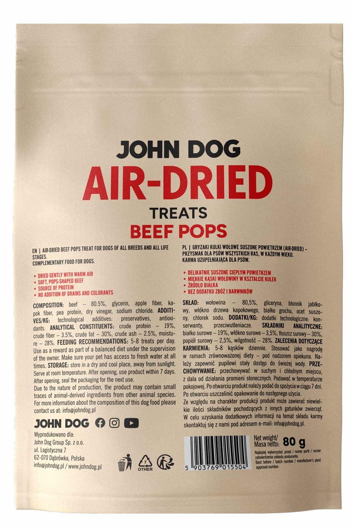 JohnDog Air-Dried Kulki wołowe to przysmaki stworzone z myślą o psach, które zasługują na to, co najlepsze. Delikatnie suszone powietrzem, zachowują pełnię smaku i wartości odżywczych. Idealne jako nagroda podczas treningu lub pyszna przekąska między posiłkami – bez zbędnych dodatków i kompromisów.