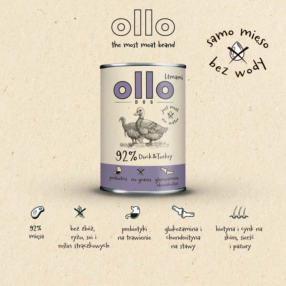 Zadbaj o zdrowie i zadowolenie swojego psa dzięki wyjątkowej karmie Ollo Umami Kaczka i Indyk. Ta harmonijna kompozycja delikatnego mięsa z kaczki i lekkostrawnego indyka dostarcza zarówno wyśmienitego smaku, jak i kluczowych wartości odżywczych.