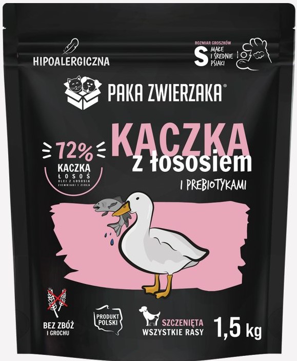 Paka Zwierzaka Sucha Puppy Kaczka Łosoś S 1,5kg