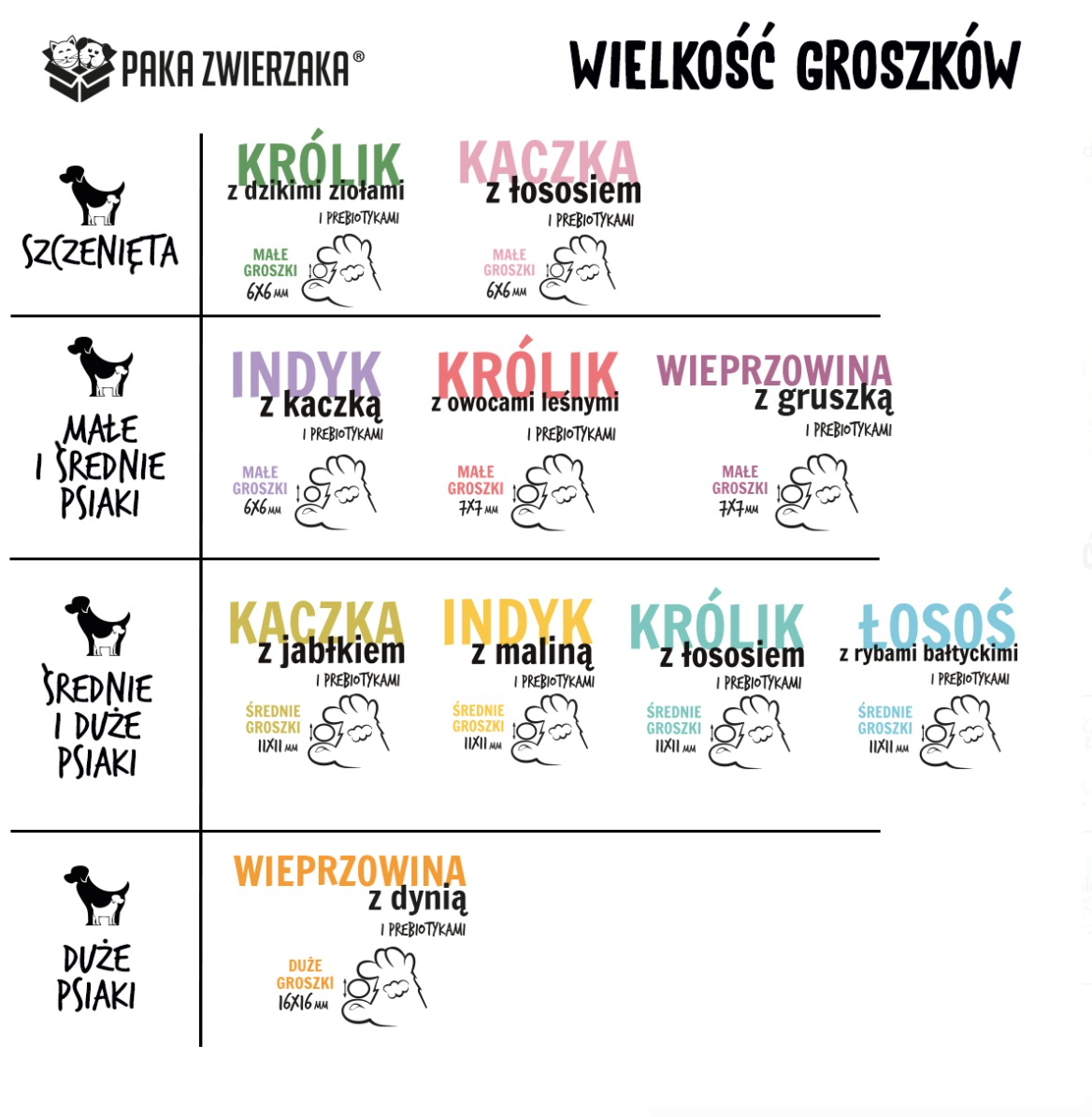 - 72% zawartości kaczki, łososia, oleju z łososia, ziemniaków oraz ziół