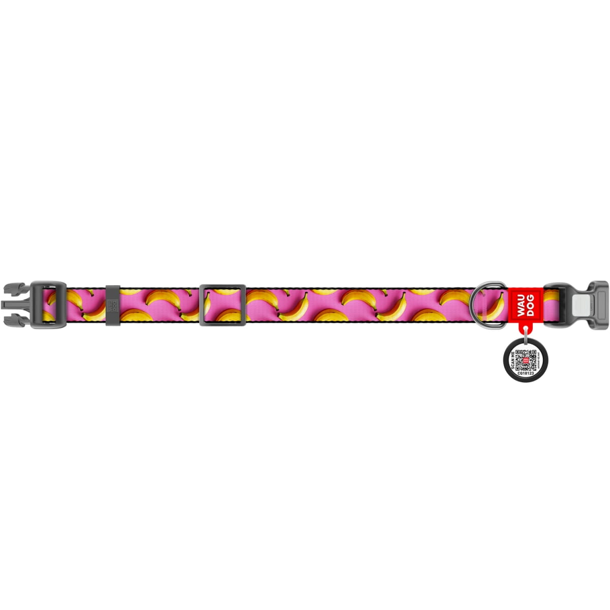WAUDOG Obroża Nylon z QR Banany Róż M 20mm 28-40cm