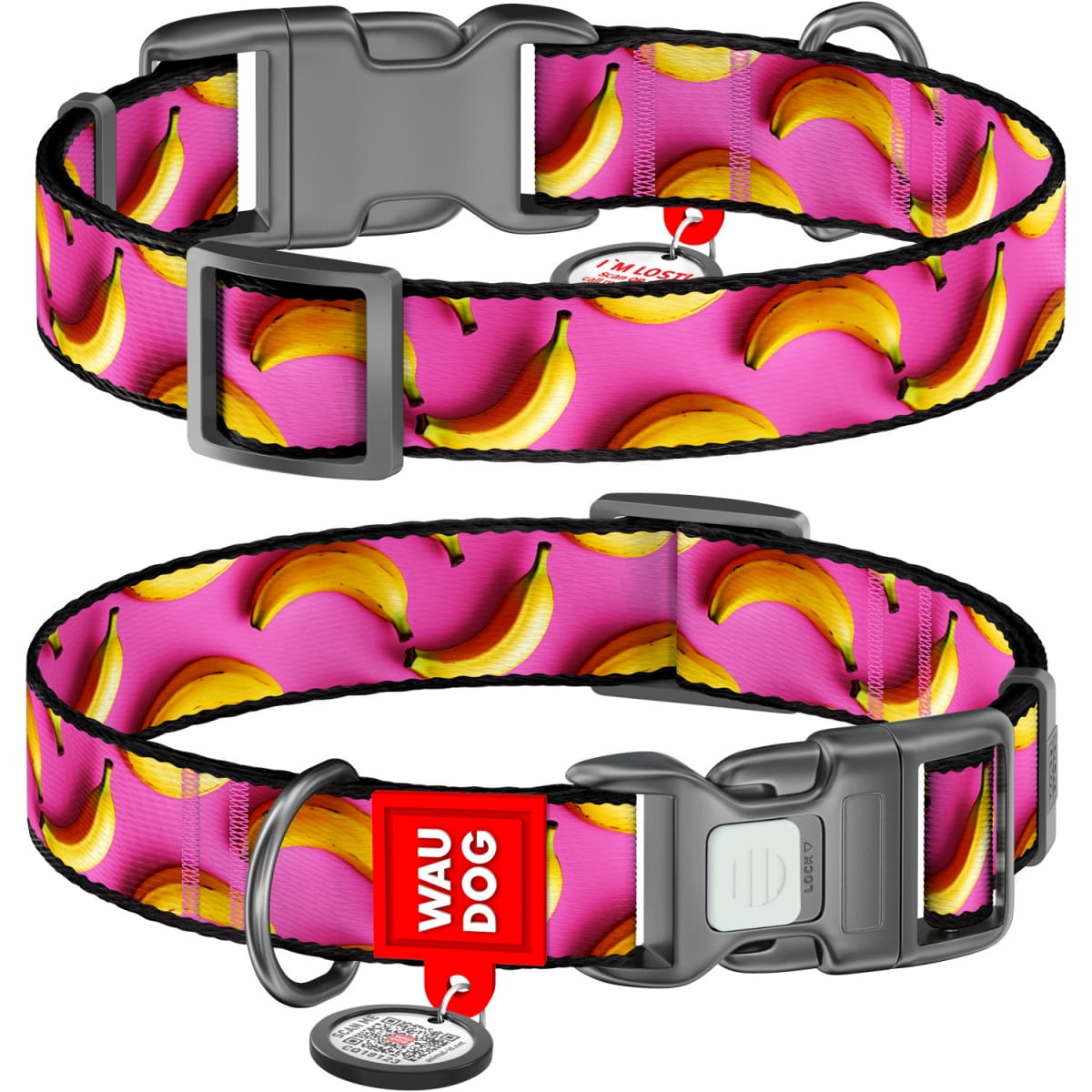 WAUDOG Obroża Nylon z QR Banany Róż S 15mm 25-35cm