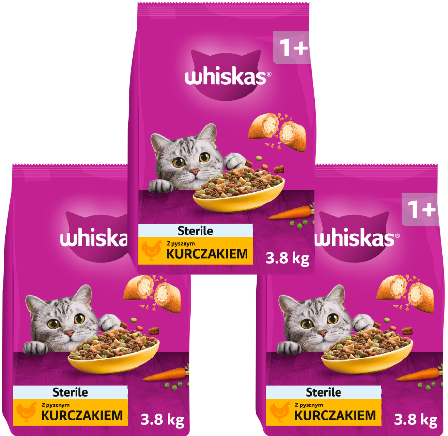 Whiskas Sucha Sterile Kurczak 3x3,8kg